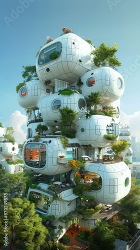 Obraz premium Futuristic Eco-Friendly Community Living in Harmony with Nature, Generative Ai