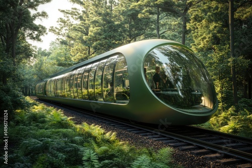 Naklejka premium Futuristic Eco-Friendly Train Journey Through Lush Forest