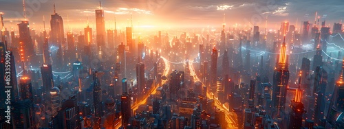 Obraz premium Futuristic Electric Grid Powering the Dawn of a New Civilization Glowing...