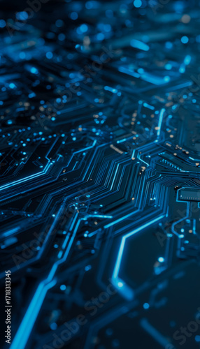 Obraz premium Futuristic electronic circuit board with glowing blue pathways