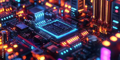 © Jack, Fototapeta premium futuristic electronic device powered by a silicon semiconductor, glowing with digital precision as it processes complex data.