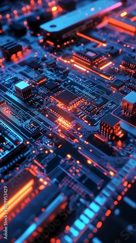 Obraz premium Futuristic electronics technology depicted through complex 3D circuit board...