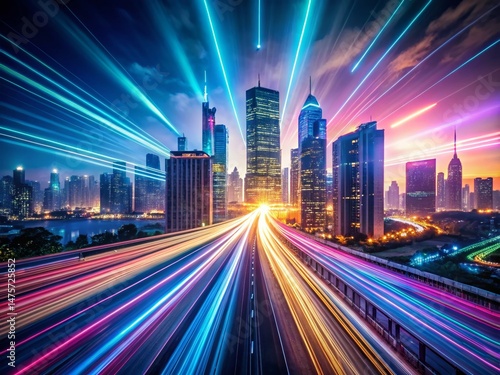 Fototapeta premium Futuristic Energy Lines: Abstract High-Speed Motion Panorama Drone Shot