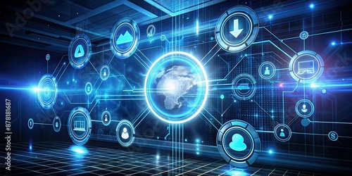 Obraz premium Futuristic ERP system with glowing technology interface, futuristic, ERP, system, glowing, technology, interface, advanced