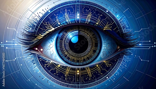 © Bagas, Obraz premium Futuristic eye with circuit design