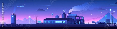 Fototapeta premium Futuristic Factory at Dusk Under a Starry Sky