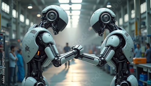 © cd, Fototapeta premium Futuristic Factory at Night, Neon Lights & Robotic Automation, and Cyberpunk Factory, Modern Technology Industrial Production Advanced Machinery Efficient, created with generative ai