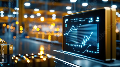 © Tam5, Obraz premium Futuristic Factory Automation Data Display Showing Growth
