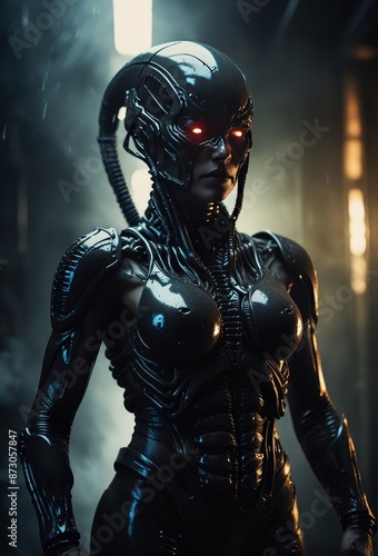 © MSHgraphics, Fototapeta premium Futuristic Female robot in black armor