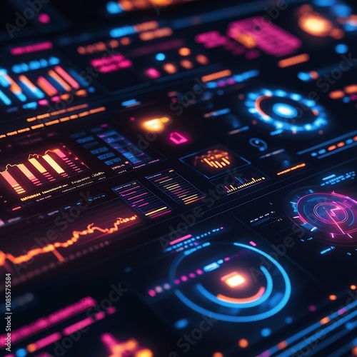 Obraz premium Futuristic Financial Dashboard with Interactive Data Visualizations and Controls