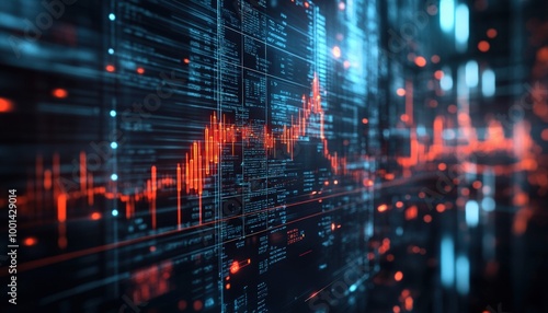 Obraz premium Futuristic Financial Data Visualization with Digital Graphs and Charts in a...