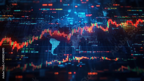 Obraz premium Futuristic financial market data visualization with glowing neon graphs and...