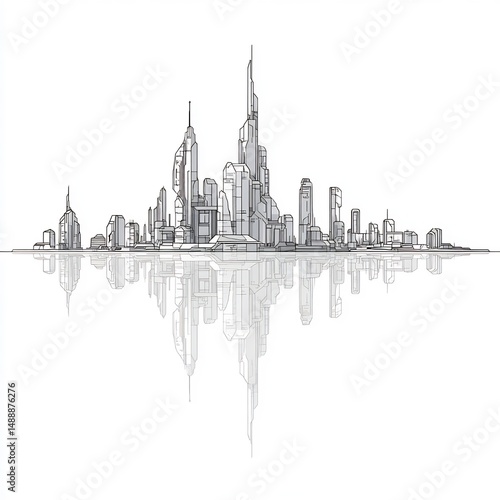 © SKY, Fototapeta premium Futuristic floating city on white background