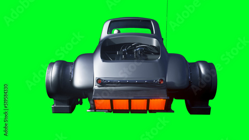 © 3D motion, Fototapeta premium Futuristic flying car. Green screen isolate. 3d rendering.