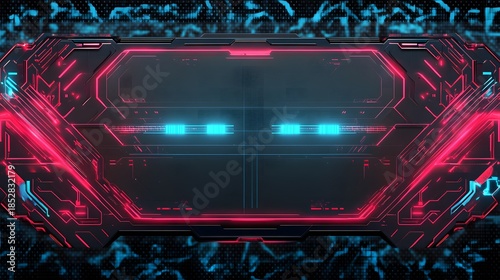 Obraz premium Futuristic frame with red and blue neon lights for digital interface.