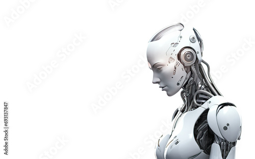 Naklejka premium Futuristic fusion, A robot with a girls face on a clean white background, a...
