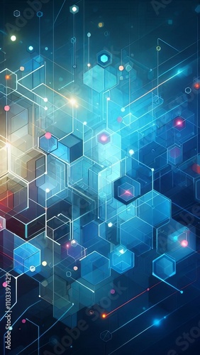 Obraz premium Futuristic geometric hexagonal pattern with transparent layers and a soft glow effect
