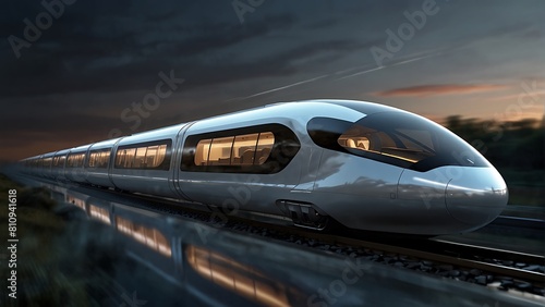 © Dove, Fototapeta premium Futuristic Glass Train Racing on Railway Track