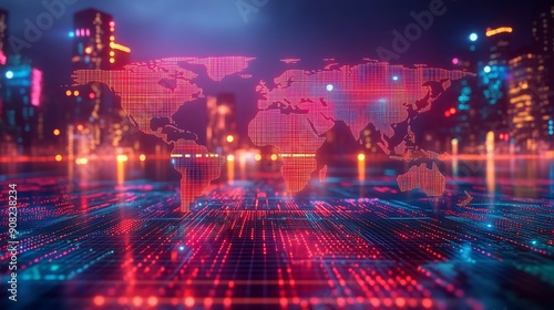 © Катерина Спіжевска, Obraz premium Futuristic global logistics solution featuring a detailed world map