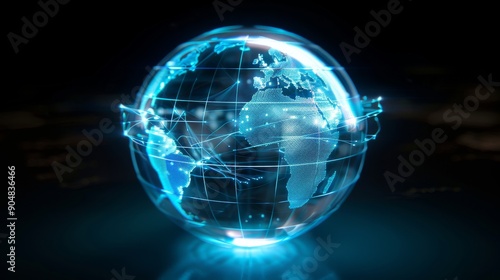 © chatchai, Obraz premium Futuristic global network concept with glowing blue planet Earth and digital connections on a dark background.