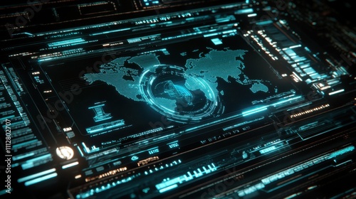 Obraz premium Futuristic Global Network Interface with Digital Map Visualization
