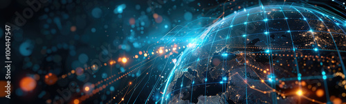 © Saim Art, Obraz premium Futuristic Global Sphere Depicting the Interconnection of Digital Data, Technology, and Communication Networks Worldwide
