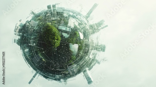 Obraz premium futuristic globe featuring greenery and urban structures, symbolizing harmony...