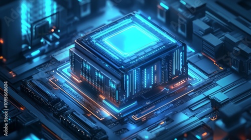 Obraz premium Futuristic glowing blue CPU on circuit board.