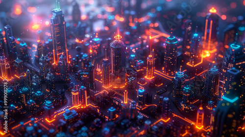 Obraz premium Futuristic glowing cityscape with neon lights