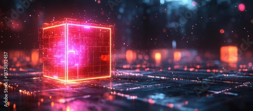 Fototapeta premium Futuristic glowing cube on digital surface