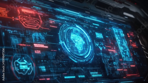 Obraz premium Futuristic Glowing Data Interface with Secure Visualization