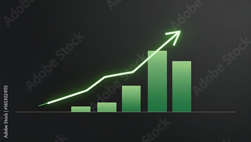 © Data Analysis , Fototapeta premium Futuristic glowing data visualization graph with neon light bars and line chart on dark background