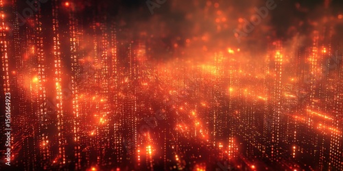 Fototapeta premium Futuristic glowing digital cityscape with vibrant orange and gold lights at...
