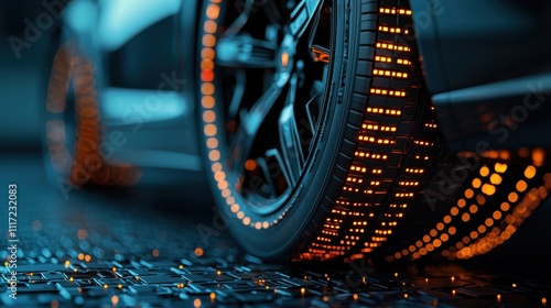 Fototapeta premium Futuristic glowing ev tire energy efficiency in urban settings