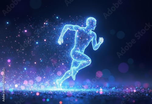 Fototapeta premium Futuristic glowing figure running, symbolizing speed and energy