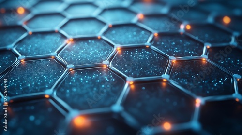 © Tatiana Vagizova, Obraz premium Futuristic Glowing Hexagonal Grid with Digital Connectivity. Generative AI