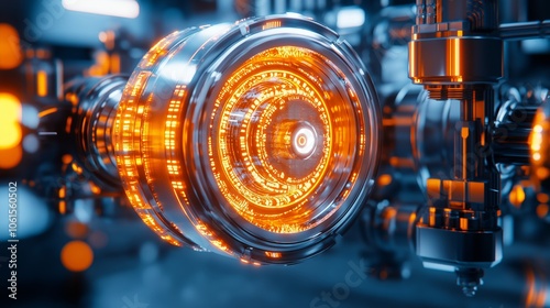 Fototapeta premium Futuristic glowing mechanism with intricate details and vibrant orange light.