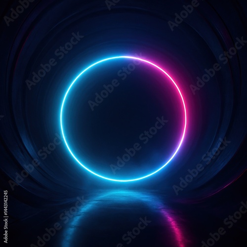 Obraz premium Futuristic Glowing Neon Ring Light in Tunnel 3D Render with Abstract Design...