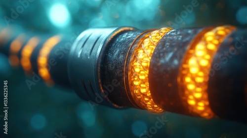 © adiar, Obraz premium Futuristic glowing pipeline in a lush forest