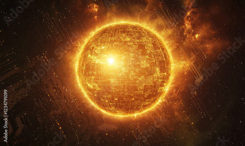 © Mahmud, Obraz premium Futuristic Green Planet with Digital Circuitry - Sci-Fi Concept