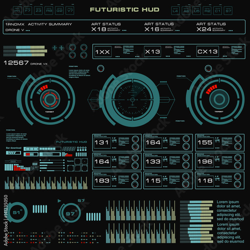 © PALERM089, Obraz premium Futuristic green virtual graphic touch user interface