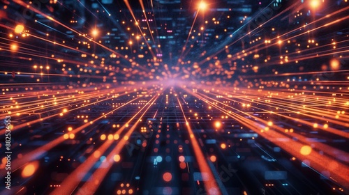 © Artur Lipiński, Fototapeta premium Futuristic Grid Landscape With Orange Lines