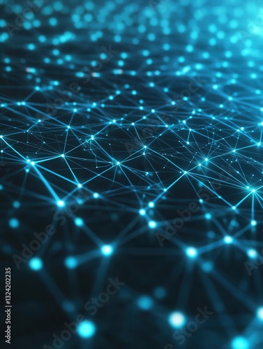 Obraz premium Futuristic grid visualization showcasing holographic effects and glowing node...