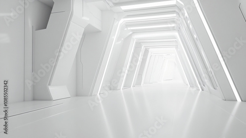 Fototapeta premium Futuristic hallway design with bright lighting in minimal style