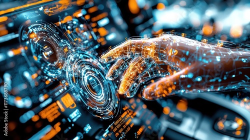 © Irina, Fototapeta premium Futuristic hamster in robotic suit navigates through a neon-lit laboratory filled with high-tech gadgets