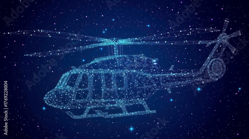 Obraz premium Futuristic helicopter, wireframe style, digital art
