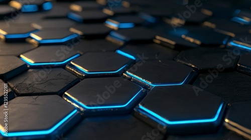 © BOJOShop, Obraz premium Futuristic Hexagon Background Abstract 3D Render Dark Blue Neon Lights