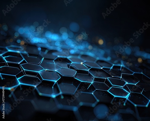 Obraz premium Futuristic hexagonal mesh lit with cool blue light, creating an abstract,...