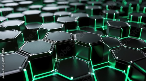 © Chainarong, Obraz premium Futuristic hexagonal network structure digital realm 3d visualization abstract environment close-up view technology concept
