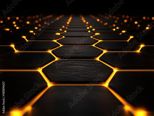 Obraz premium Futuristic hexagonal pattern glowing with warm golden light, creating a...